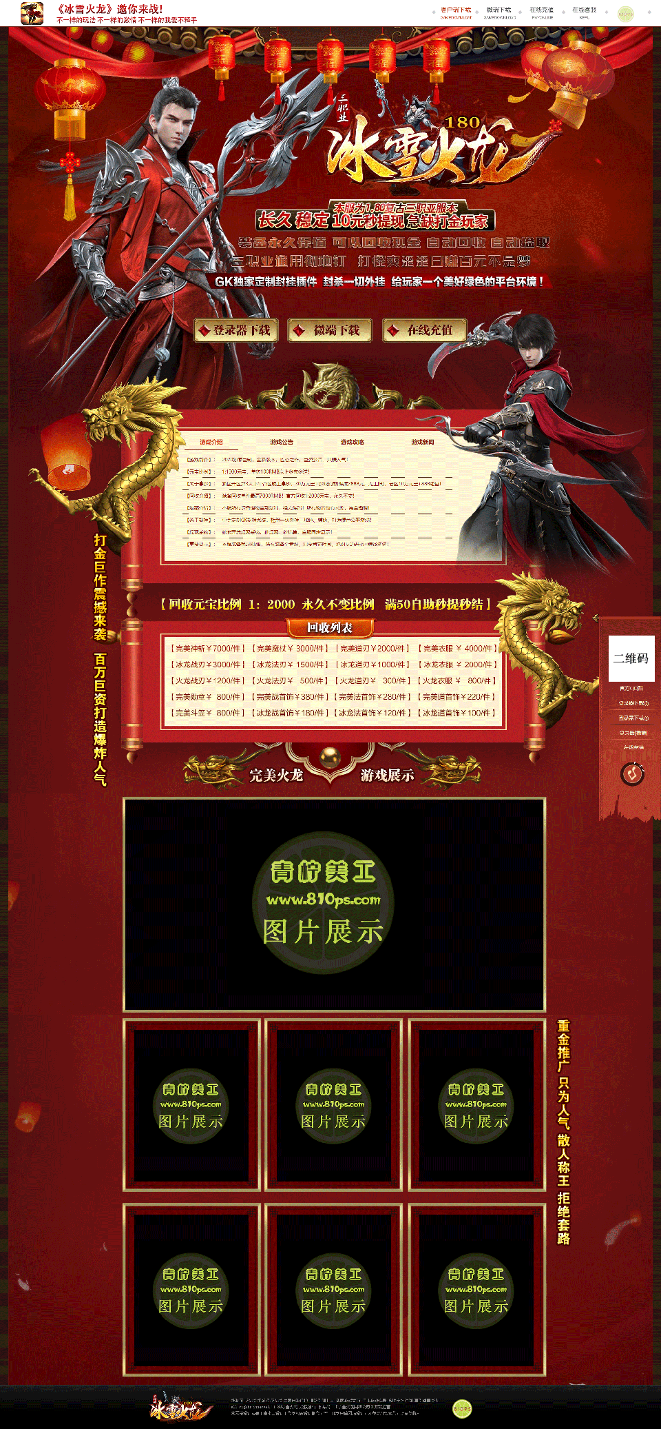 3.全套服务包括:精美手绘logo、Flash动画、精美宣传字体、登陆界面、登录器皮肤及Link、下载页、动态装备图、动态小logo!